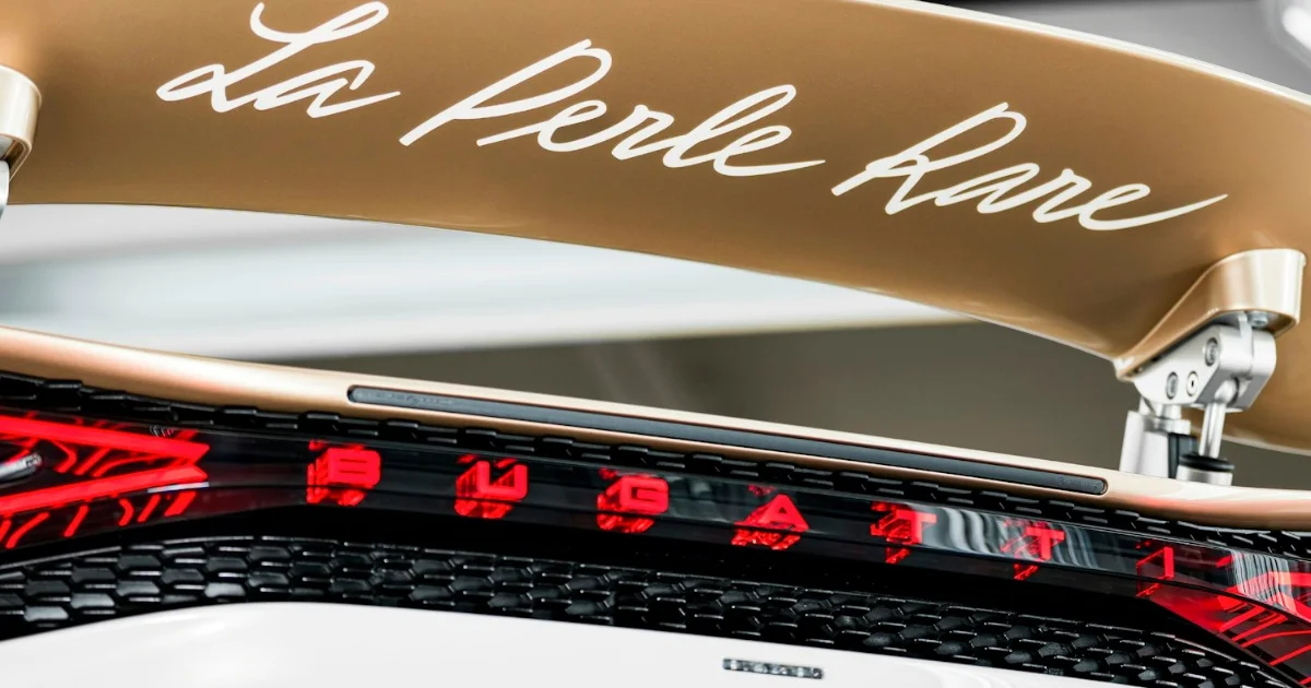 To continue giving the Bugatti W16 Mistral a decent look, they have scripted the name “La Perle Rare” on top of the engine covers, also along the underside of the active rear wing, and it’s stitched into the center tunnel.