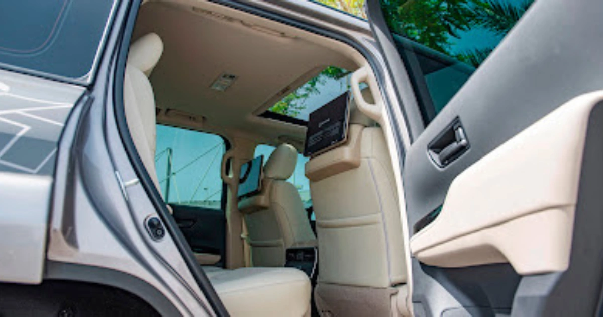 The back passenger also has access to entertainment, with each seat having its infotainment system except for the captain’s chairs, which can either be folded down to a cupholder for the second-row passenger or up to allow room for one passenger. It has a third row which can be folded to allow additional space for storage.