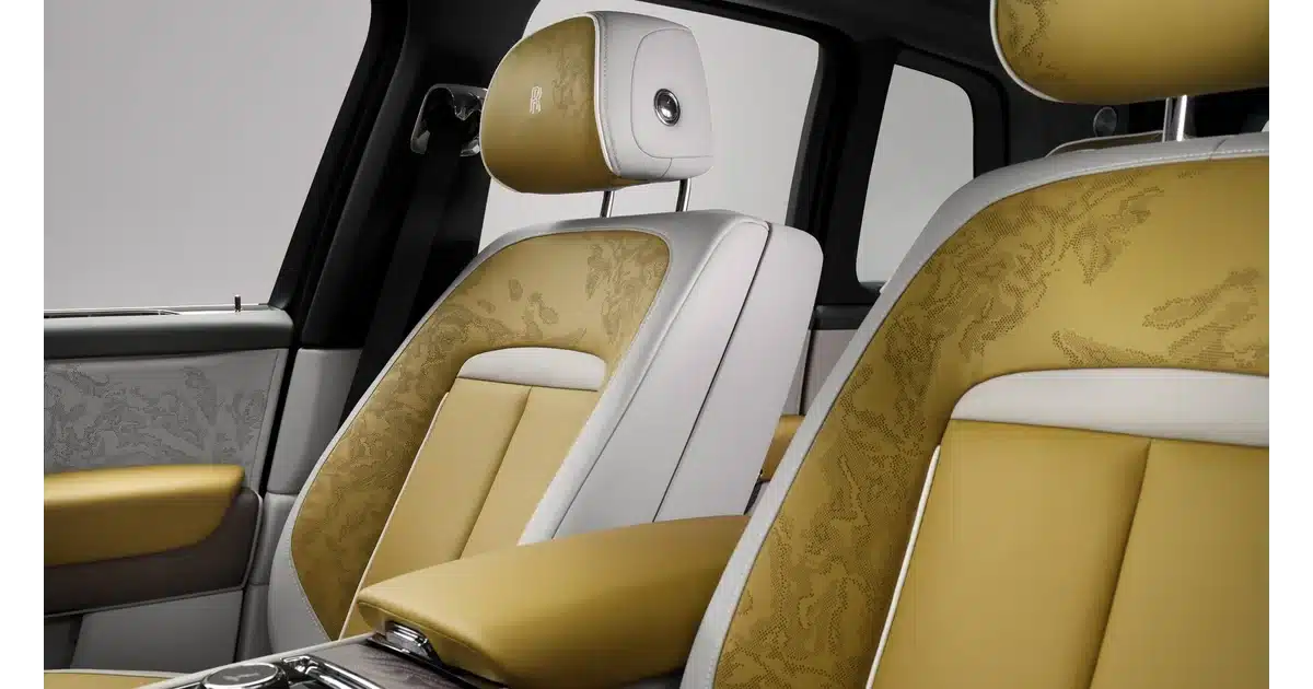 The dashboard also includes the Illuminated Fascia panel, featuring Cullinan branding atop a skyscraper-inspired artwork. Owners can commission their own Illuminated Fascia design. A new clock cabinet to the left of the touchscreen houses an analog timepiece and a lit stainless steel Spirit of Ecstasy figurine that mirrors the SUV’s hood ornament.